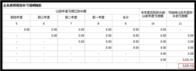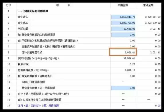 “弥补以前年度亏损”本期金额出现负数(如下图所示)。